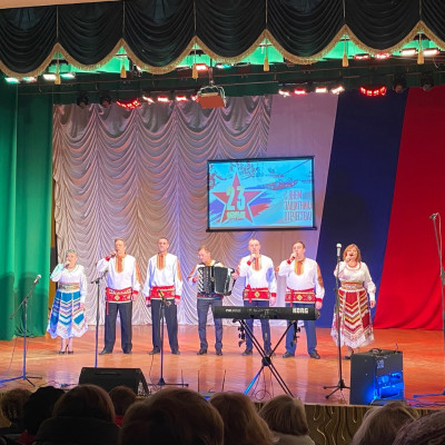 На протяжении всего вечера со сцены звучали теплые поздравления в адрес мужчин, были патриотические музыкальные номера.