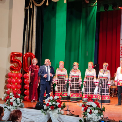Руководитель отдела по культуре Н.В. Колмакова поздравила хор и пожелала коллективу процветания, поблагодарила за привлечение внимания к поистине русской культуре, олицетворением которой является и народная песня. За большой вклад в развитие народного творчества и в связи с 50-ти летием со дня основания Народного хора, Наталия Васильевна вручила благодарственные письма ветеранам коллектива: С.В. Коваленко, Н.В. Архиповой, С.А. Денисенко, Л.П. Плоховой, Н.Г. Симоновой, С.Е. Саликову, О.Ю. Захаровой, Г.Г. Азарных.